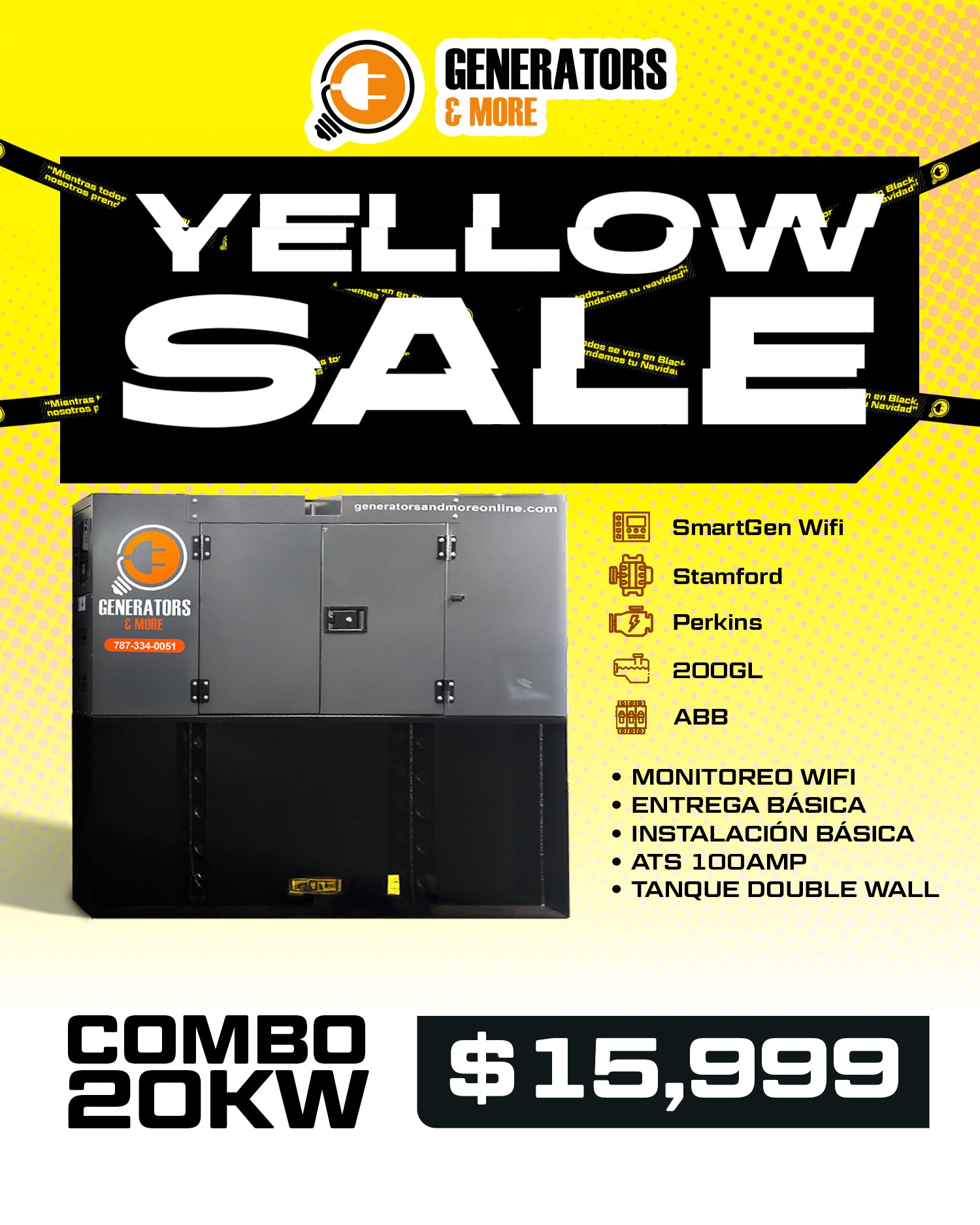 Combo Generador Diésel 20KW con SmartGen WiFi – Yellow Sale ⚡